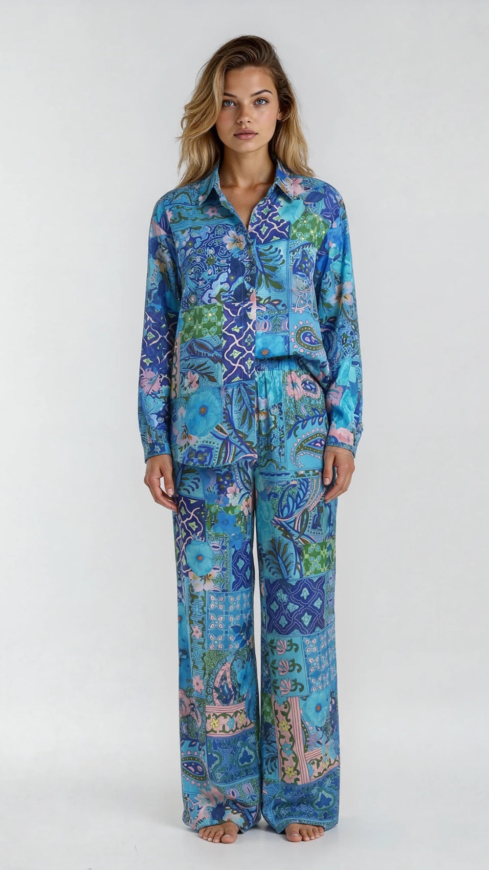 "JOHNNY" Silk Pants - Magical Mosaic Azure