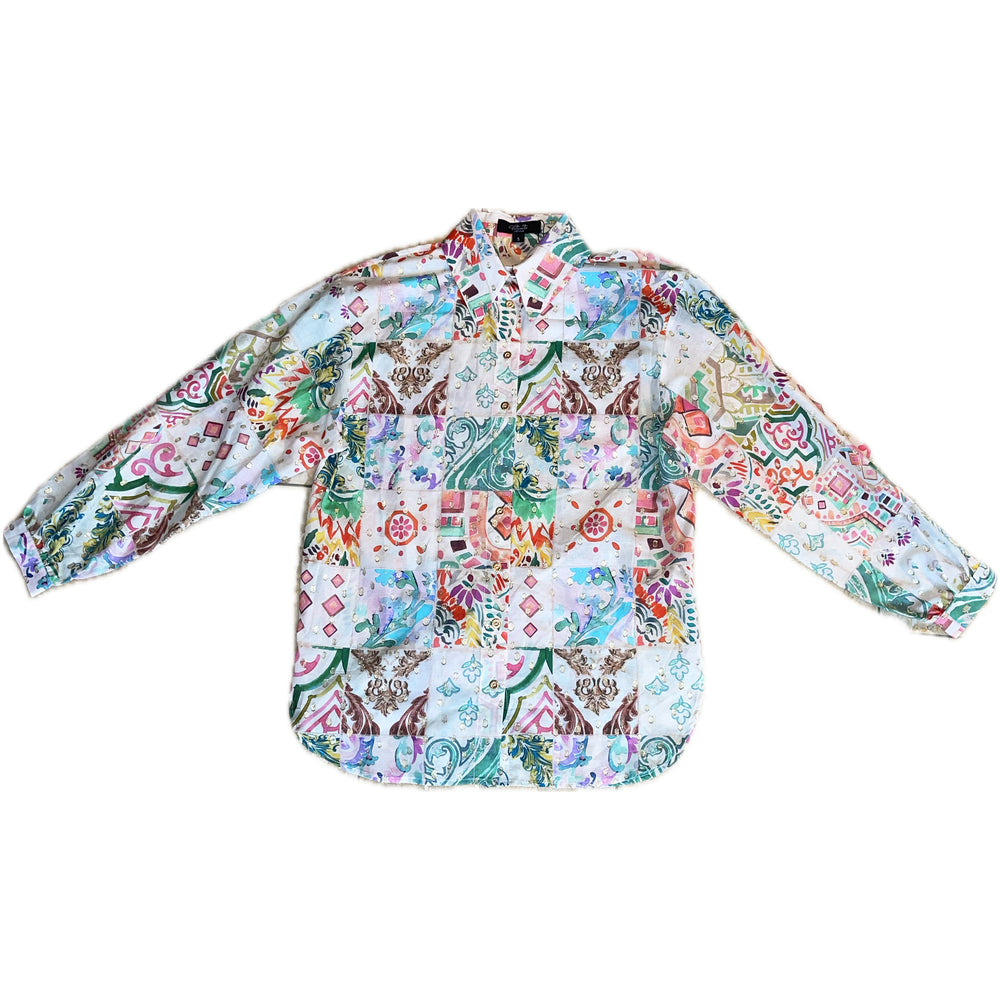 „JUNE“ Seiden-Baumwollbluse – Azulejo Light