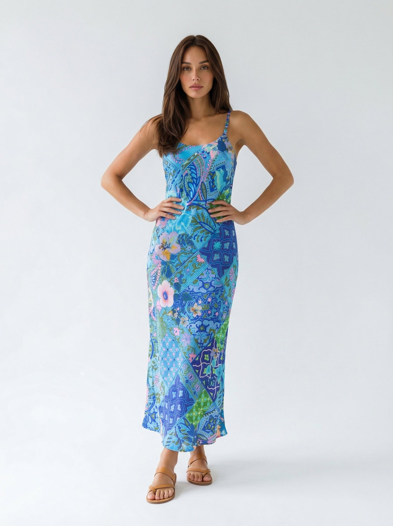 „NOT YOUR DARLING“ Slip Dress Midi – Mosaic Azure
