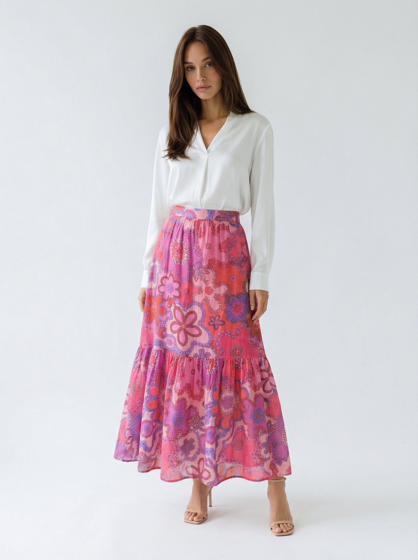 "SORRENTO" Seiden/Leinen Maxi-Rock Pink Bloom